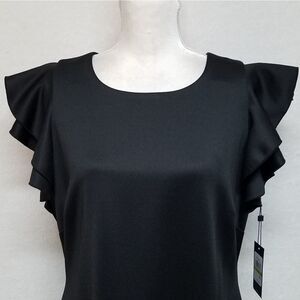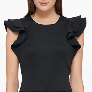 Tommy Hilfiger Scuba Flutter Ruffle Cap Sleeve Black Sheath Dress, new with tag.