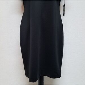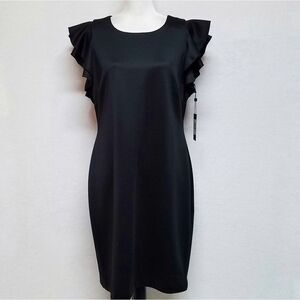 TOMMY Hilfiger Scuba Flutter Ruffle Cap Sleeve Black Sheath Dress 14 NWT