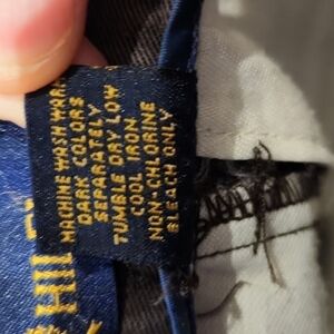 Brown vintage Tommy Hilfiger pleated dress pants. Size 36×32. Does not have tag for material, but guessing it is Cotton. A couple small flaws as seen in pics, in good vintage condition.
