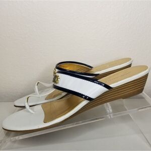 Tommy Hilfiger Women’s Ambria T Strap Sandals 8M White - Gold Metallic