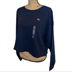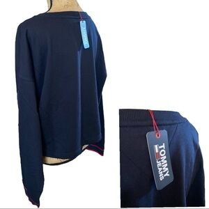 TOMMY JEANS Cropped Crewneck Sweatshirt Navy Blue Boxy Women’s Size X-L…