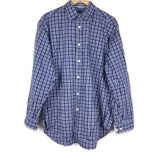 TOMMY JEANS Vintage Y2K Button Up Shirt Long Sleeve Plaid Cuff Logo Size Medium