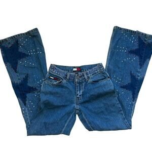 Y2K, Rhinestone Jeans, Split Flare, Star Denim, Tommy Hilfiger, 2000s, Americana, Retro, Festival Outfit, Vintage Denim, Rare Find, Indie Sleaze, Grunge, Low Rise Jeans, Almost Famous, Costume