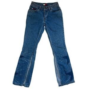 TOMMY JEANS Y2K Low Rise Rhinestone Split Flare Denim Stars Logo Retro Size 0