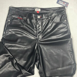 TOMMY JEANS Women's Mid-Rise Faux-Leather Straight-Leg Pants Sz 32
