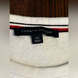 TOMMY HILFIGER Logo Flag Crew Neck Sweatshirt Large White.