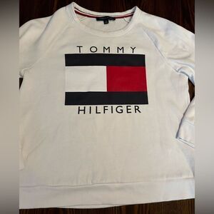 TOMMY HILFIGER Logo Flag Crew Neck Sweatshirt Women's L classic white preppy