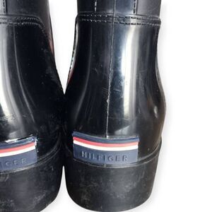 TOMMY HILFIGER WOMEN'S KARISSA RAIN BOOT BLACK SZ.9 GUC. GORGEOUS RAIN BOOTS IN GOOD USED CONDITION. HAS SOME SCUFFS BUT STILL IN GREAT CONDITION.