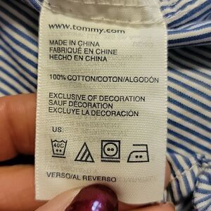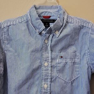 TOMMY HILFIGER BLUE AND WHITE PINSTRIPED DRESS SHIRT, SIZE 3T