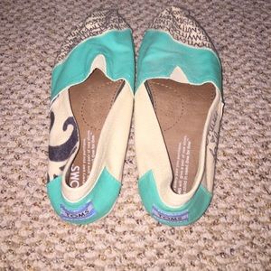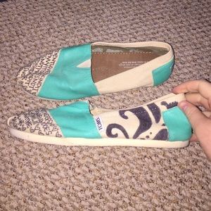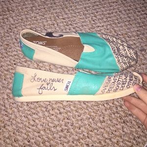 "Love never fails" teal and cream TOMS. Barely worn and in great condition!