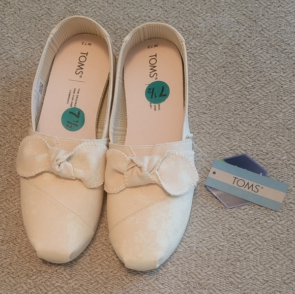 TOMS Pink & White sunfaded shoes with bow SIZE 7½ Condition in pictures