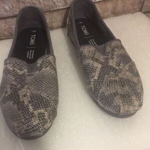 Step out in style with these TOMS slip-on shoes featuring a striking snakeskin pattern. The gray color adds a versatile touch to your wardrobe. Perfect for casual outings.