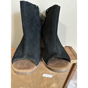 TOMS 8.5 Black Suede Booties Stack Wedge Heel Casual Ankle Boots