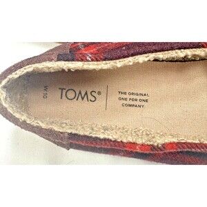 TOMS ALPARGATA LEATHER WRAP BARN RED PLAID SHEARLING LINED SHOES W10