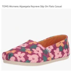 Elevate your wardrobe with these TOMS Alpargatas in a beautiful dark fuchsia color adorned with stunning floral blooms. These slip-on flats have a square toe shape and a comfortable fabric upper material with a quilted accent. The outsole is made of durable rubber and the insole is cushioned for added comfort.