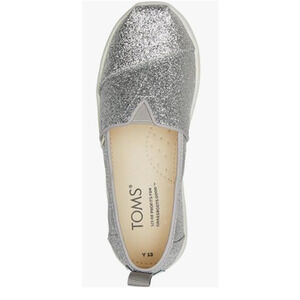 Elevate your little one's style with the TOMS Alpargata Sneaker in a dazzling silver iridescent glimmer finish. These sneakers, designed for US Unisex Big Kids in size 3, combine comfort and style effortlessly. The classic Alpargata silhouette is updated with a shimmering exterior, adding a touch of sparkle to any outfit. Featuring TOMS' signature design, these sneakers are not only fashionable but also socially conscious, with every purchase supporting their One for One® program. Whether for school or play, the TOMS Alpargata Sneaker ensures your child steps out in style and comfort.