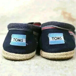 TOMS Alpargata Striped Red White Blue Patriotic Slip On Espadrille Flat Raffia Soul Shoes Women Size 7.5