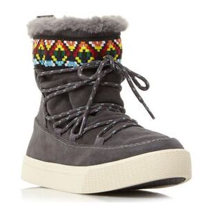 These Toms Alpine boots are made for durable style. Inspired by snow fashion, these shoes are designed to lace up with a Southwest woven band and faux fur inner as well as a thick sole to protect against the elements.