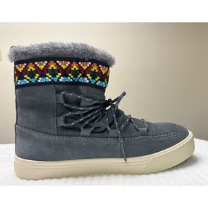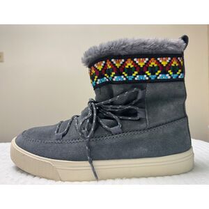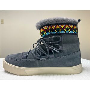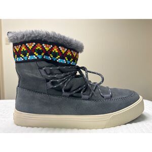TOMS Alpine Lace Up Suede Boots,Woven Southwest Band, Sz 8M