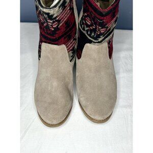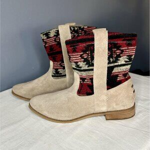 TOMS Ankle Boots Womens 11 Laurel Desert Tan Suede Knit Aztec Pull On Western