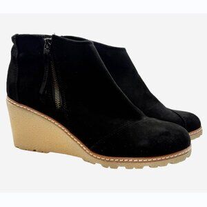 TOMS Avery Black Suede Wedge Ankle Booties Size 10 NWT 3" Heel Casual Shoes