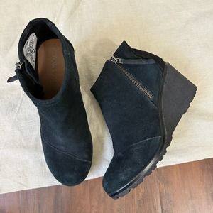 TOMS Avery Wedge Booties Side Zip Ankle Boots in Black Suede US 8B