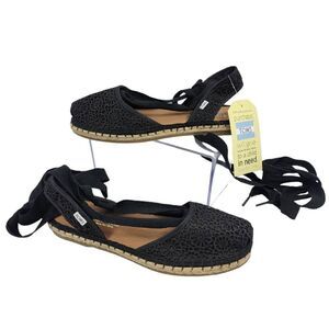 TOMS BELLA Womens Black CROCHET LACE UP ESPADRILLE SANDALS SHOES Size 6.5