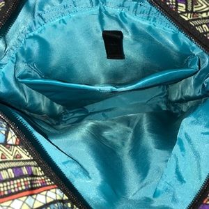 TOMS backpack in gently used condition. Top flap of bag is bent due to being stored away (pictured). I examined the bag and I don’t see any other flaws. Main pocket has a sleeve for a laptop. All zippers are fully functional. The backpack doesn’t have pockets/slots for a water bottle.