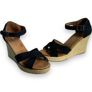 TOMS Black Canvas Open Toe Ankle Strap Wedge Heel Espadrille Sandals Size 8.5