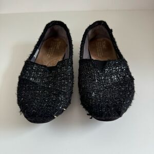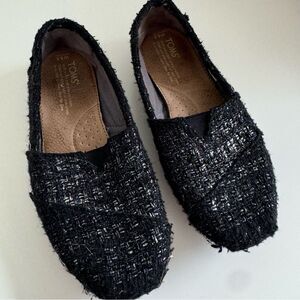 TOMS Black Glitter Wool Classic Loafer Slide Ons Women’s Size 6.5