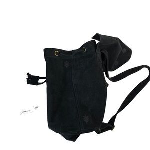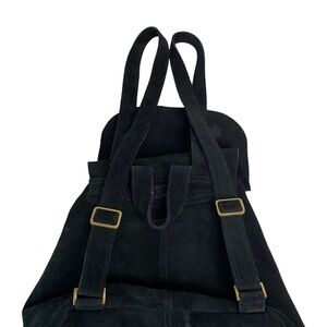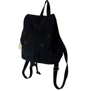 TOMS Black Suede Embroidered Poet Flap Backpack Bag