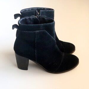 TOMS Black Suede Stacked Block Heel Ankle Boots / Booties Size 7