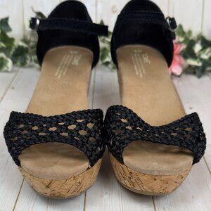 TOMS Black Woven Cork Wedge Sandals Size: 9W