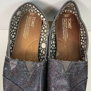 TOMS Black Glitter Slip-Ons Size 8 EUC