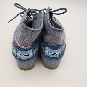 TOMS Blue Chambray Desert Wedge Boho Bootie Lace Up Shoes Youth Big Kid Size 4