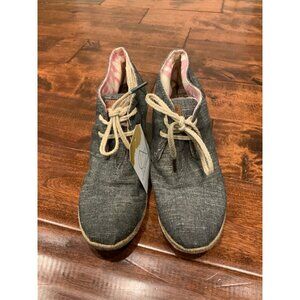 TOMS Blue Chambray Espadrilles Wedge Heels, Size 7.5 (US)
