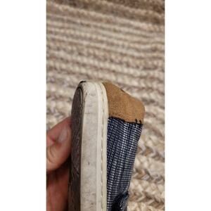 Casual coolness kicks in with these charming TOMS slip-on shoes. Featuring a playful blue and white striped canvas upper, these shoes are a breeze to slip on and off, thanks to the convenient hook and loop closure. The tan suede heel detail adds a touch of understated elegance, while the durable sole ensures long-lasting wear. They're perfect for a day at the park, a casual playdate, or any everyday adventure where comfort and style are essential.