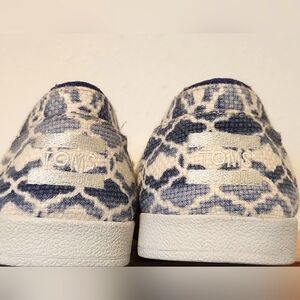 TOMS Blue and White Patterned Canvas Slip-On Shoes Women's 8 Nearly New