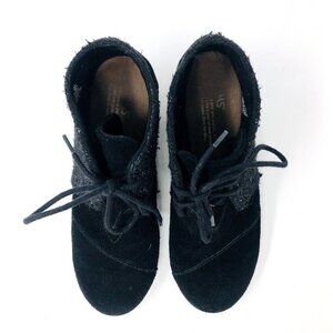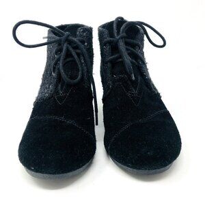 TOMS Boots Womens 7 Kala Black Suede Desert Wedge Heel Ankle Bootie Tweed Casual