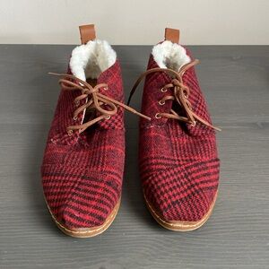 TOMS Bota Desert Boot Red Plaid Faux Fur Lined Ankle Lace Up Bootie Size 9.5