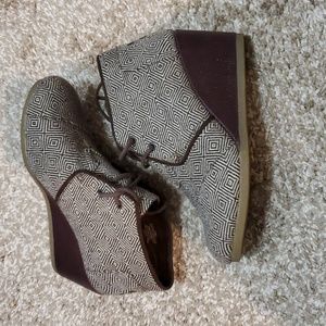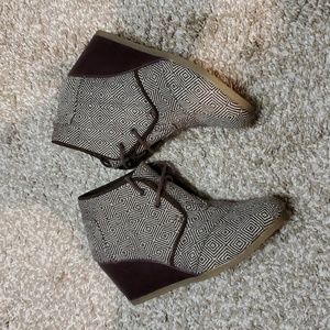TOMS Brown Wedge Lace Up Bootie