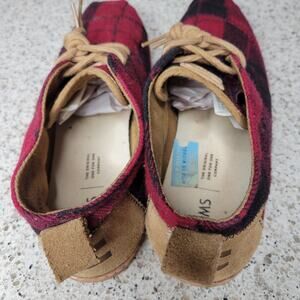 TOMS Buffalo Check Plaid Wool Chukka Ankle Boots LaceUp Red Black Womens✨️8.5