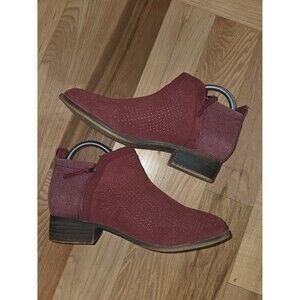 TOMS Burgundy Perforated Suede Ankle Boot Size 6.5