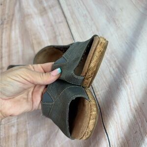 TOMS CALYPSO GRAY GOLD SHIMMER OPEN TOE SANDAL HEEL SHOE SIZE 6