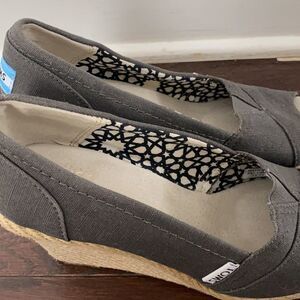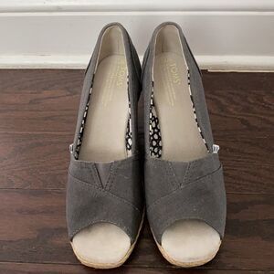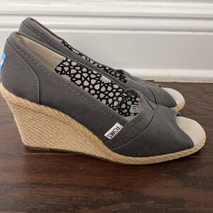 TOMS Calypso Canvas Peep Toe Wedge Pump Espadrille Shoes Size W 7.5