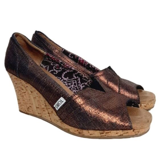 TOMS "Calypso" Peep Toe Copper Metallic Wedges Sz 9. Excellent, pre-owned condition.
