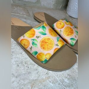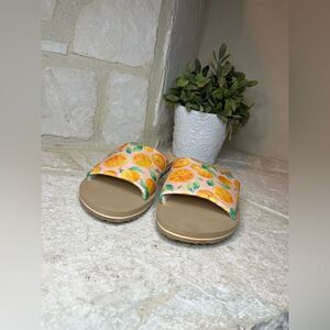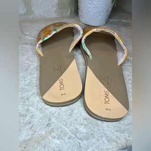 TOMS Carly Pale Pink Fabric Sunkissed Oranges Slip On Slides Sandals sz 11