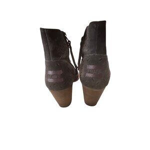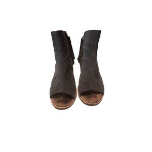 TOMS Charcoal Gray Perforated Suede Peep Toe Ankle Boots Size 5.5