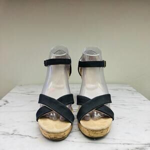 TOMS Clarissa Black Suede Leather Wedge Sandal Women’s Size 8.5