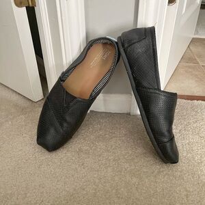 TOMS Classic Alpargata Slip On Genuine Leather Perforated Flat Driving Shoes